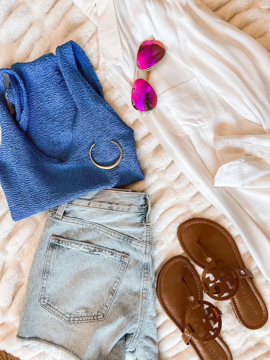 White button-down - This is a closet staple, but for warmer weather I prefer a softer, flowy version of this workwear classic. You can wear it on the plane for travel, use as a coverup during your trip and tie in the front for a cute day-time look.